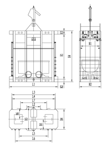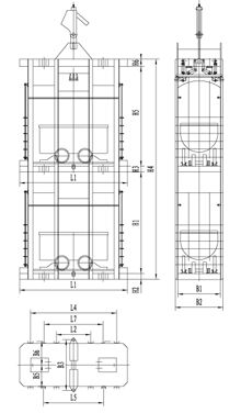 單繩罐籠由楔形連接裝置,抓捕器、罐體、罐內(nèi)阻車器、導(dǎo)向裝置組成,如用于上下人,則必須設(shè)置斷繩保險(xiǎn)器(防墜器),抓捕器根據(jù)制動(dòng)繩布置形式可分為I型(對(duì)稱)抓捕和II型(對(duì)角)抓捕形式。常用單繩罐籠及配套防墜器的具體型號(hào)參數(shù)見附表。
