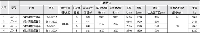 斜井箕斗技術(shù)參數(shù)